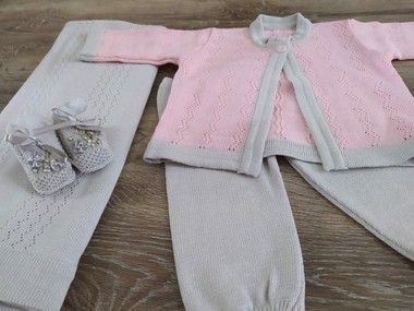 Saída Maternidade composta por: Casaquinho + Calça + Manta e Sapatinho (fio antialérgico)